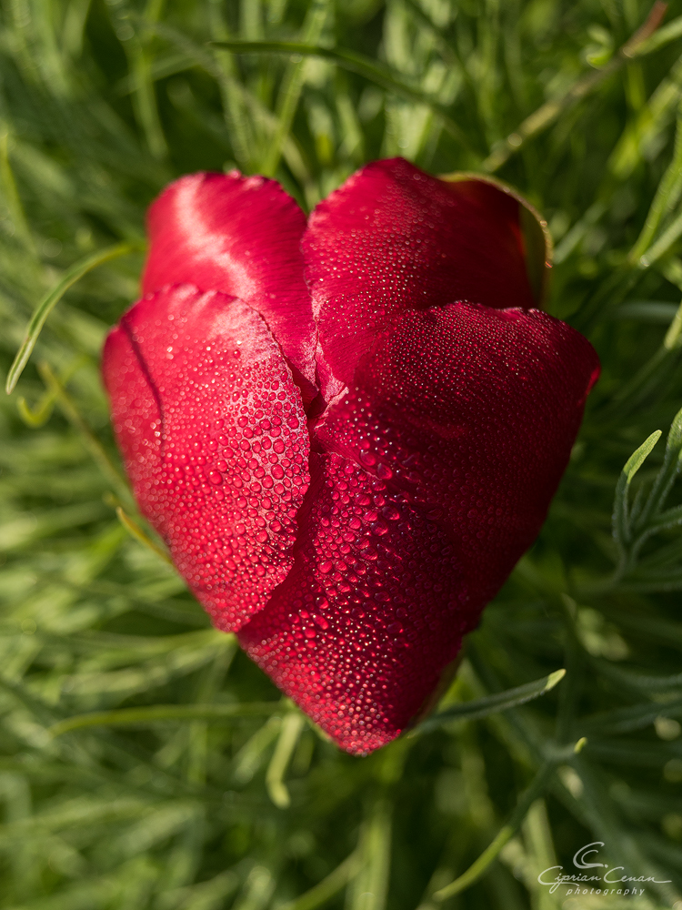 Bujorii de stepă au o înălţime de 10-30 de centimetri şi florile, de un roşu aprins, sunt extrem de firave şi mor imediat dacă sunt culese.